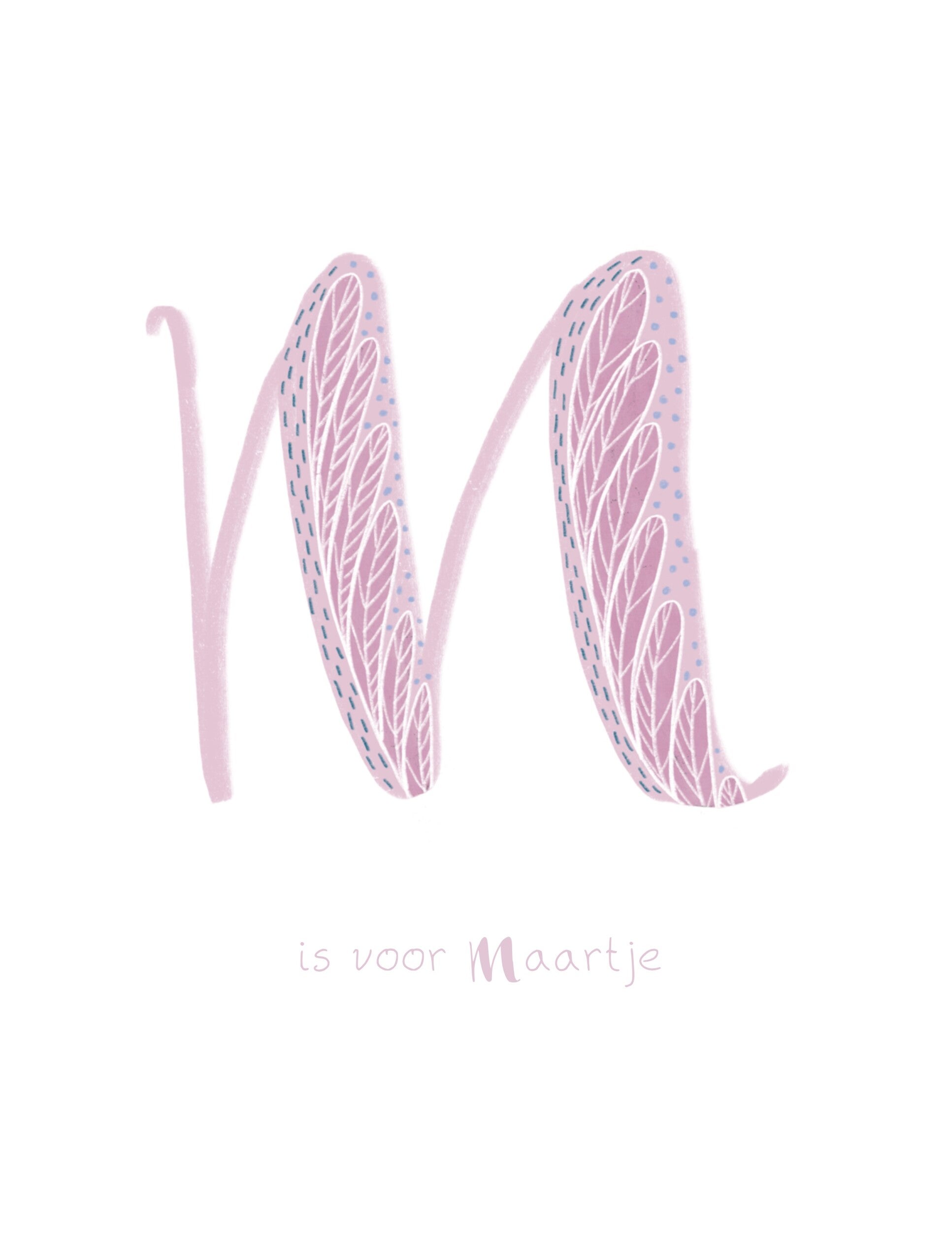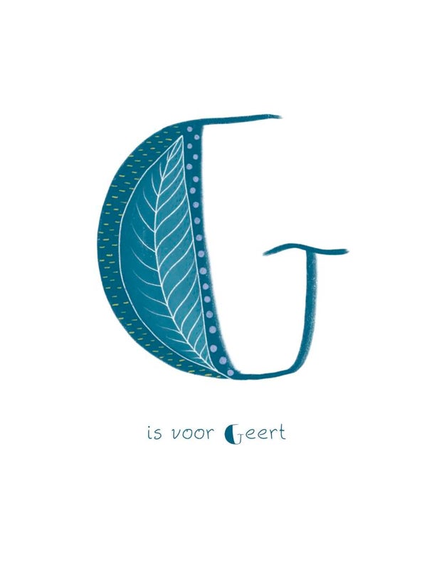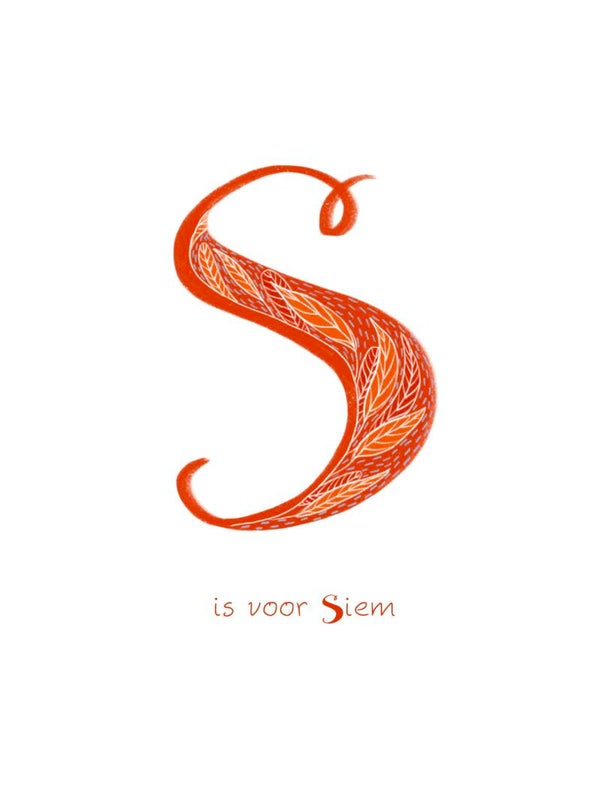 Wanneer jij deze print besteld, geef je aan mij door welke naam jij er graag op wil. Ik zet de 1e Letter in het groot, en "is voor (de naam)" in het klein er onder, op de illustratie.