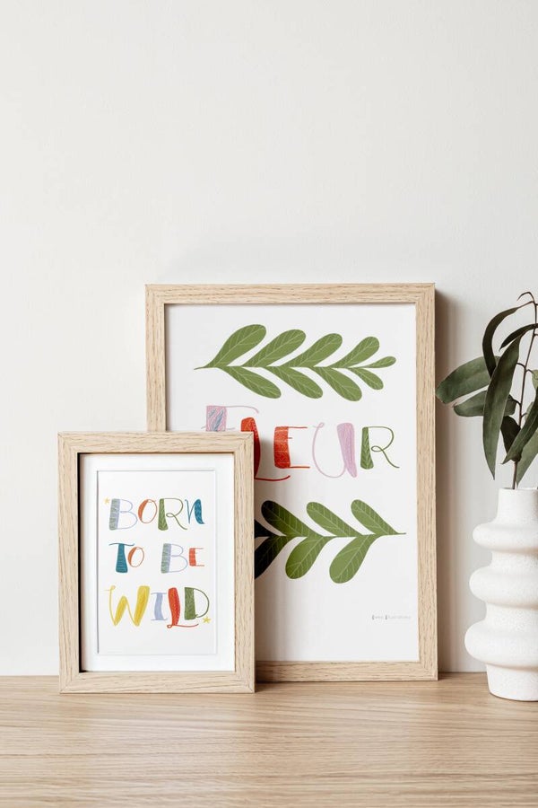 Een A5 formaat print met hele blije letters!